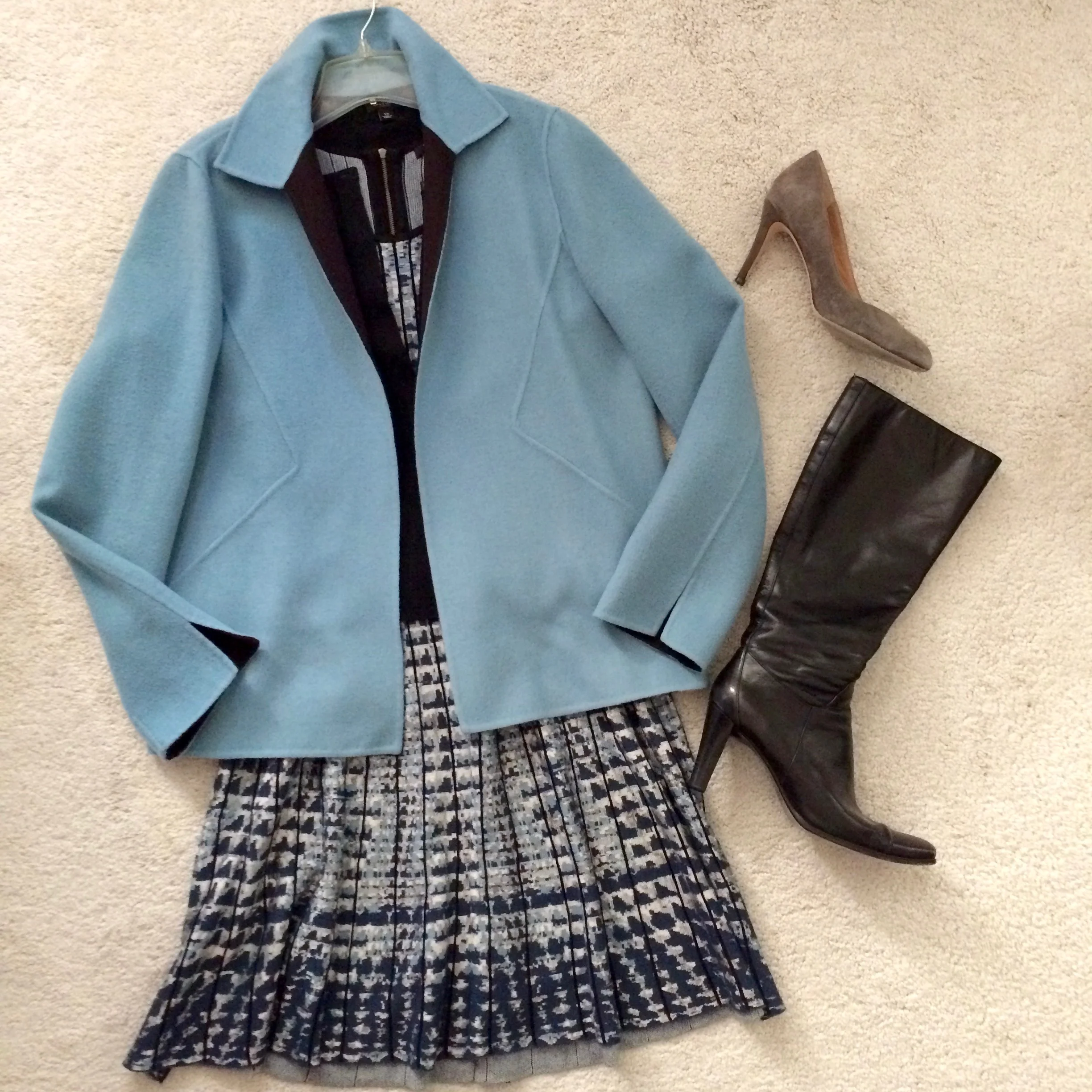 Layers are how you can take a dress that you bought in the summer and make it winter-ready - which is precisely what I did for my client a few weeks back. We started with this short sleeve indigo knit dress from MM LaFleur (one of my favorite resources for a professional women's wardrobe), and mixed and matched it with things from her closet to create cold weather appropriate outfits - and then we did the same thing with a couple of other dresses, too.