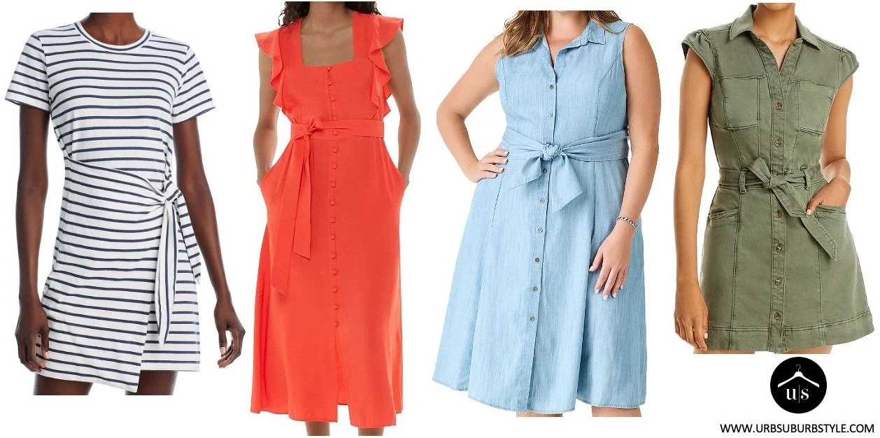 Rails striped dress, Whistles red dress, Nic + Zoe denim dress, Paige utility dress.