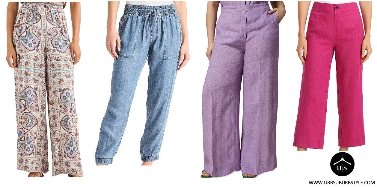 Lightweight pants run the gamut from easy-breezy vacation styles to errand-worthy joggers to office-ready tailored silhouettes. It’s less about the shape and details, and more about the fabric that makes them work for the season. Linen is a summer go-to – but be aware that linen pants mean lots of wrinkles. So, you can either embrace it or avoid it. If you’re avoiding it, go for gauze, light cotton or tencel – or any drapey, breathable blend. And then read this for two other things you can avoid this summer.