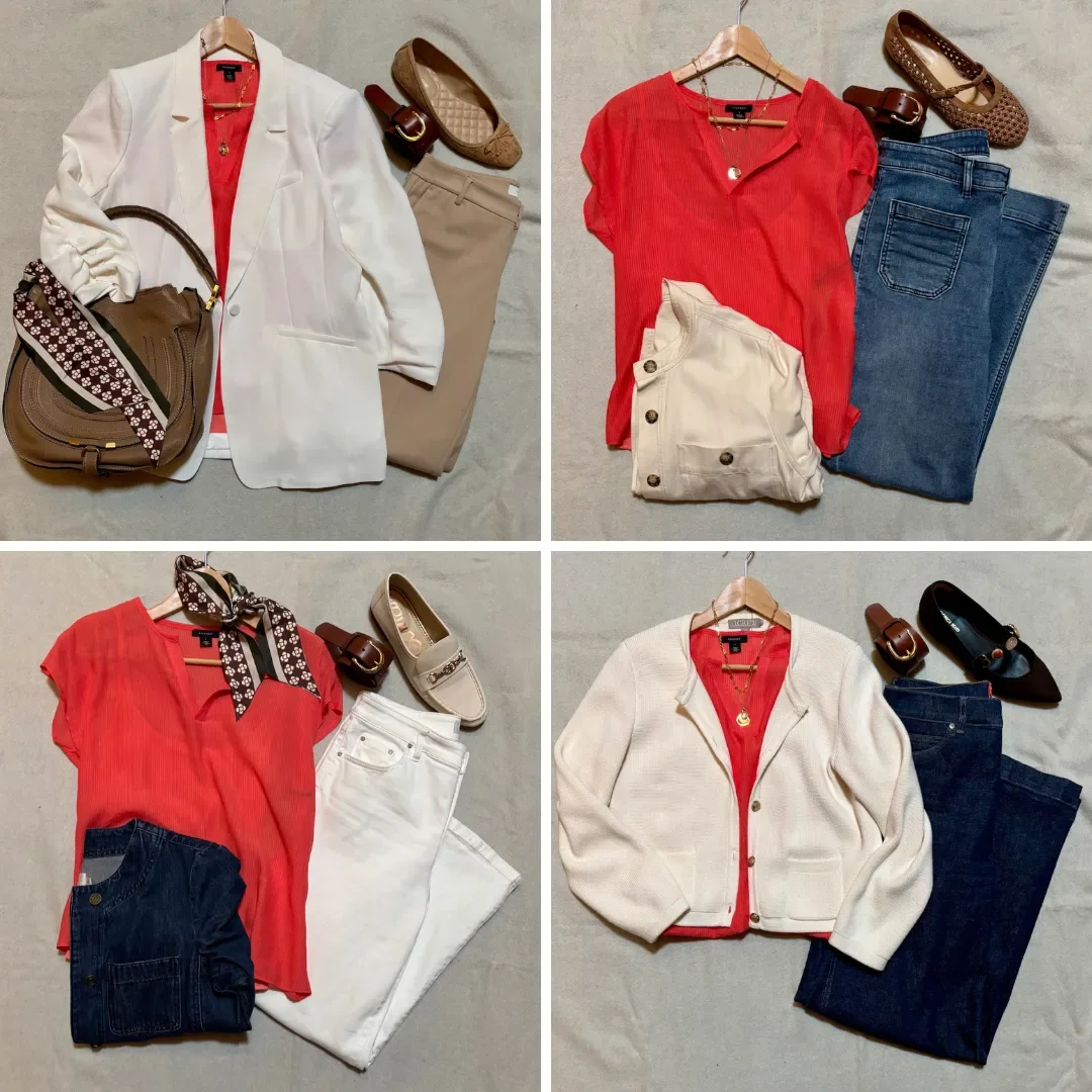 4 outfits I created to show the versatility of her coral blouse (one of the 5 pieces she was barely wearing)